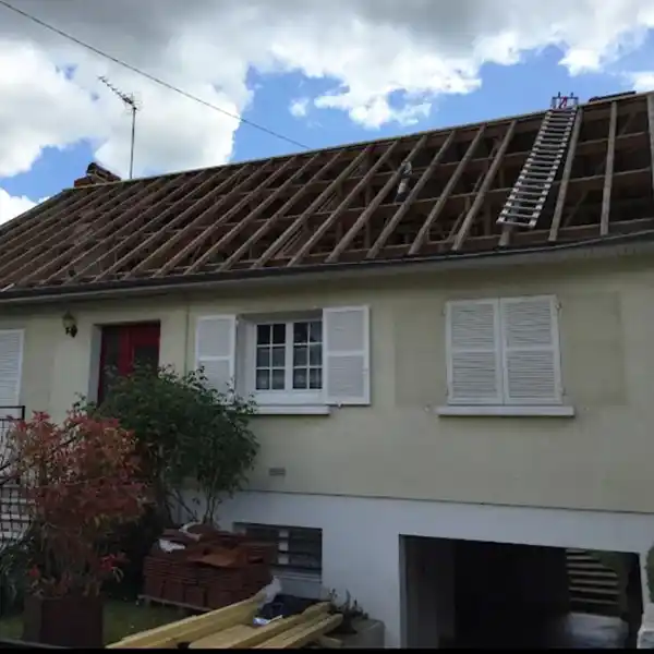 Vérification et remise en état de la charpente : contrôle des chevrons, remplacement des éléments affaiblis.